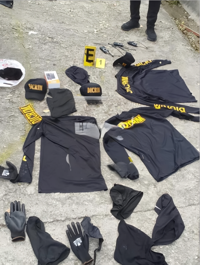 En su residencia fueron recuperados dos objetos de fuego de cañón corto calibre 9 mm, uno con número de serie borrado, además de cargadores, 46 cápsulas, pasaportes y cuatro placas vehiculares. Las investigaciones confirmaron que los objetos de fuego figuraban con reportes de sustracción mediante acto violento. También se incautaron teléfonos que contenían comunicaciones entre los presuntos miembros del grupo.