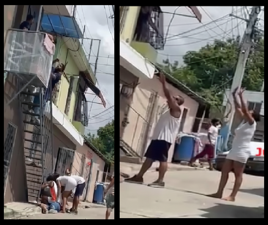 La confrontación dejó visibles huellas de violencia en la vivienda, especialmente en el área de la escalera donde se desarrolló la agresión más fuerte. Testigos aseguraron que el enfrentamiento fue presenciado por varios vecinos, quienes observaron la manera en que el hombre recibió continuos indeseables con el bate de aluminio antes de que intervinieran las autoridades.