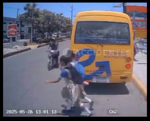 En el registro visual se observó el instante exacto en que un motorista transitaba en sentido opuesto y terminó impactando a una estudiante que acababa de descender del autobús escolar. El video capturó de forma nítida el momento en que la joven, al intentar cruzar la calle con cautela, se vio interrumpida por la rápida llegada del vehículo. En la grabación se evidencia que, al descender del transporte, la estudiante se disponía a cruzar la calzada cuando el motociclista, que circulaba en vía contraria, invadió el carril destinado a los peatones.